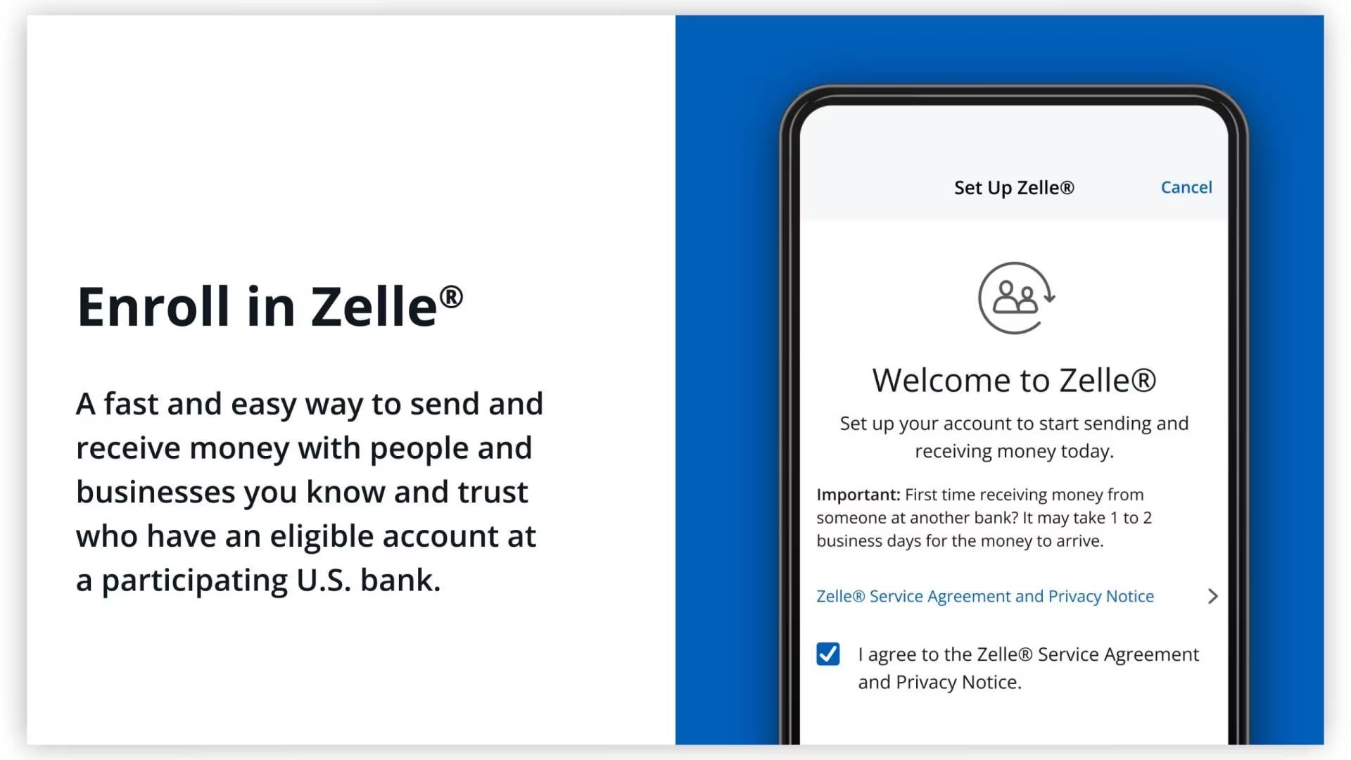 Most major banks (Chase, BofA, Wells Fargo, etc.) have Zelle already built into their mobile app.