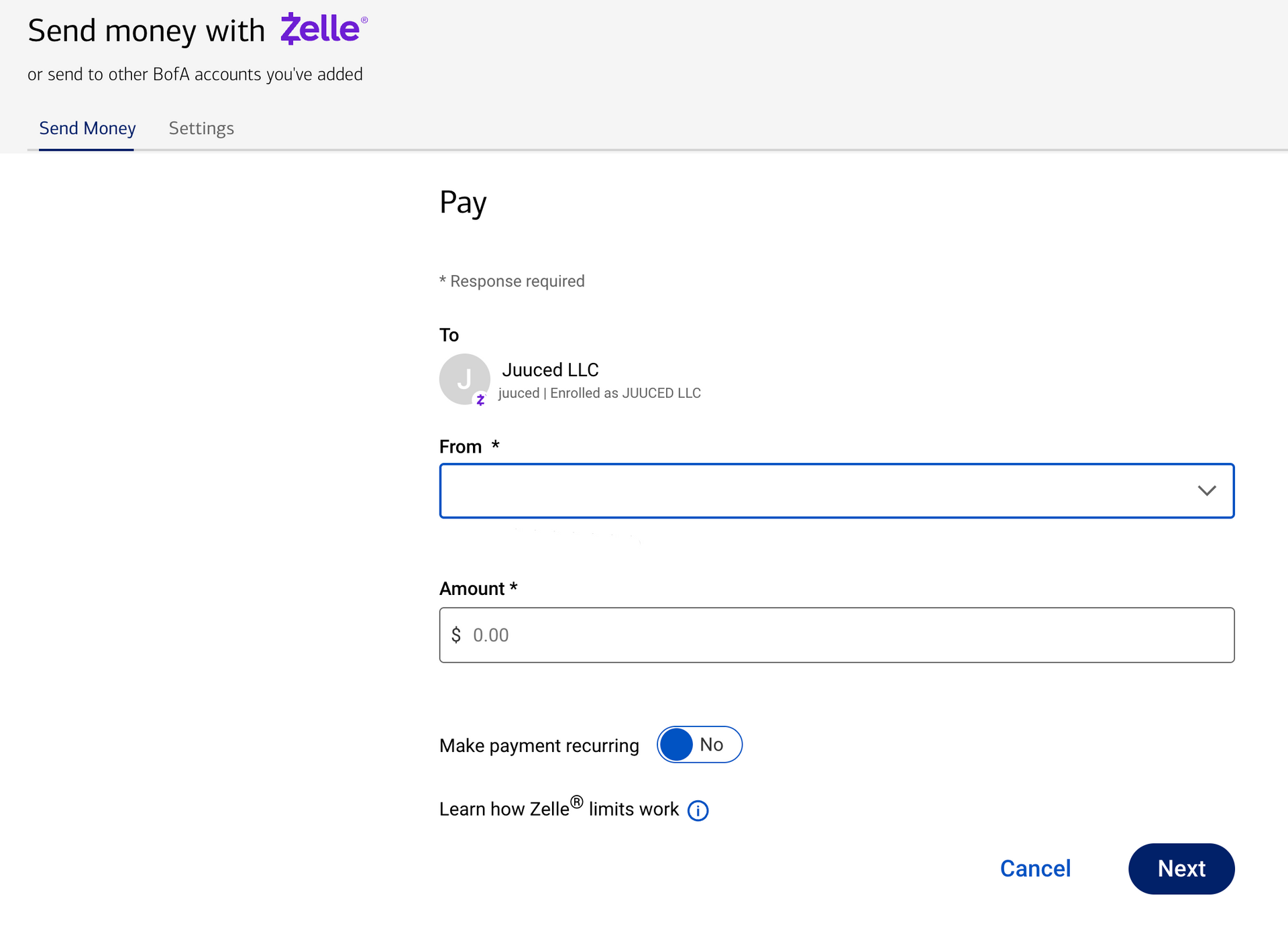 4. Select your account and enter the amount: Input the exact amount from your invoice.